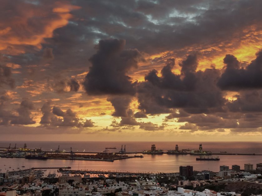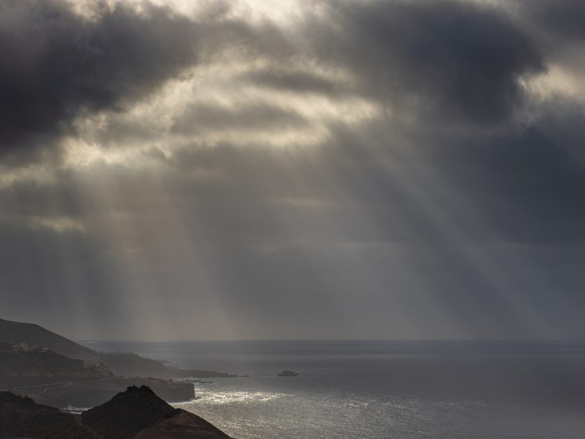 Las cascadas de luz son un espectáculo en el amancer de Las Palmas de Gran Canaria muchos días del año. Para que se produzacn es necesario que el cielo este