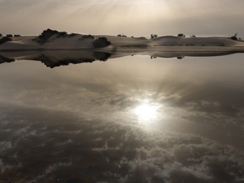 La charca de Maspalomas es un irresistible objeto de fotografía, ofrece muy diversas composiciones fotográficas, motivos y tonos de luz según la hora/minuto del día. El amanecer, por supuesto, es