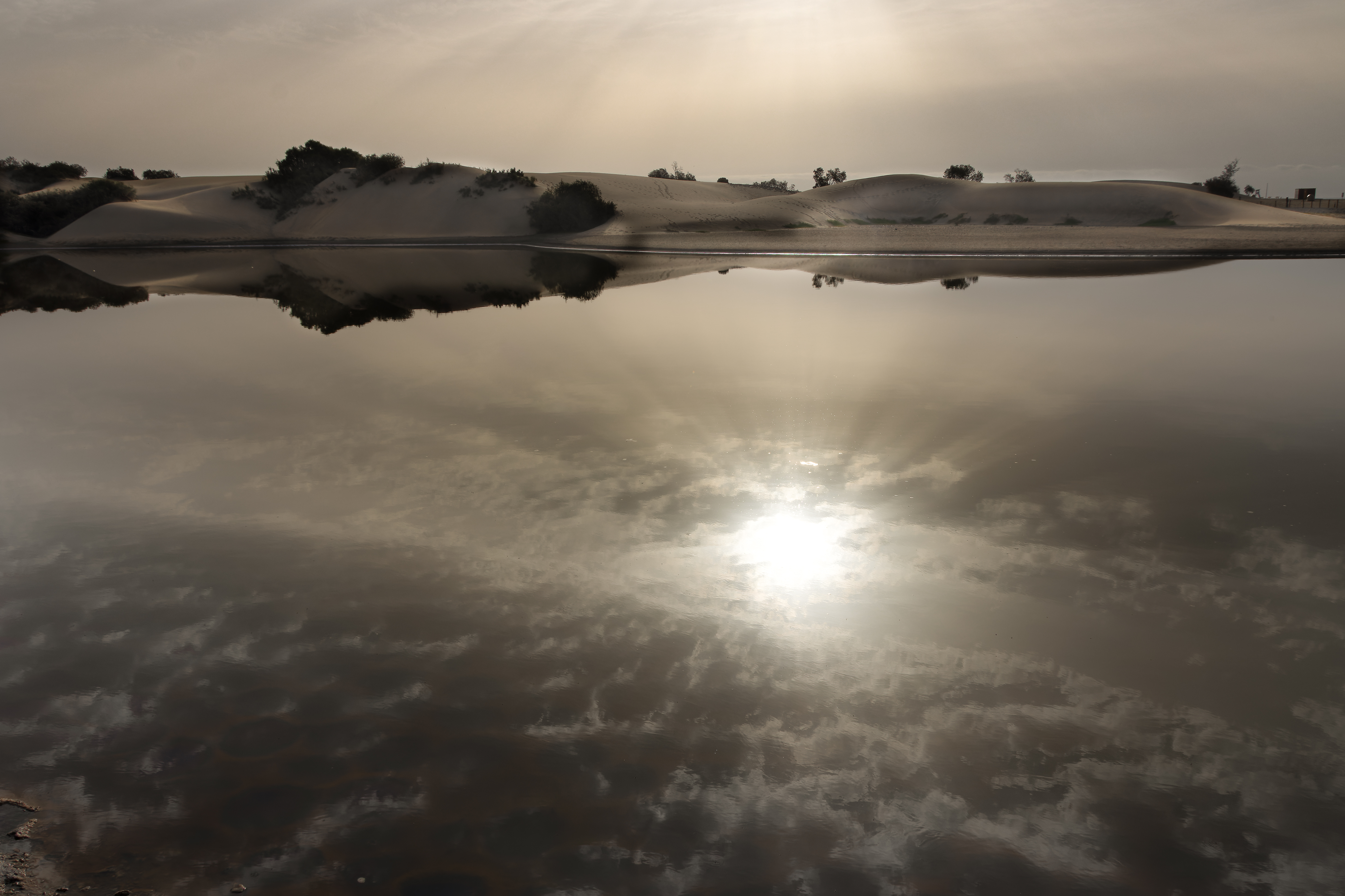 A veces, el paisaje se da la vuelta. EL cielo y la tierra parece que invierten sus posiciones. El mundo al revés. Ya de vuelta después de un precioso amanecer del que , como aficionado a la fotografía, no había sabido obtener una bonita imagen, me tropecé con este «Espejismo». Día completo !!!